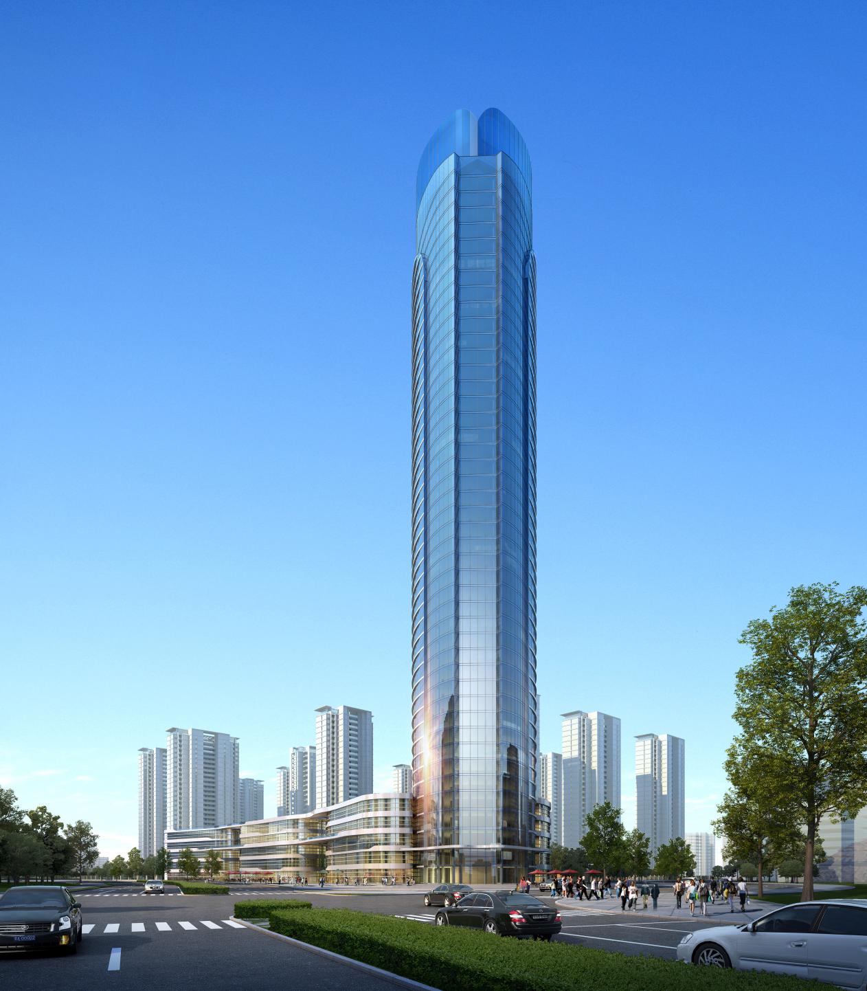 項(xiàng)目占地面積約209畝,總建筑面積約40萬方,容積率約2.8,綠化率達(dá)30%。本項(xiàng)目建筑設(shè)計(jì)遵循“以山水之蘊(yùn),天地之氣充盈其間,盡顯人文內(nèi)涵”的原則,整個(gè)項(xiàng)目由13棟住宅樓和1棟199米超高層寫字樓(金融中心)和2棟智創(chuàng)中心,1棟鄰里中心,1個(gè)9班雙語幼兒園組成。