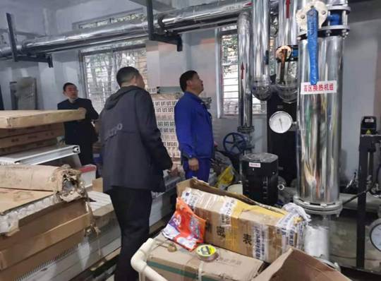(圖為維修人員在特飛所小區(qū)熱交換站檢查供熱設(shè)備)