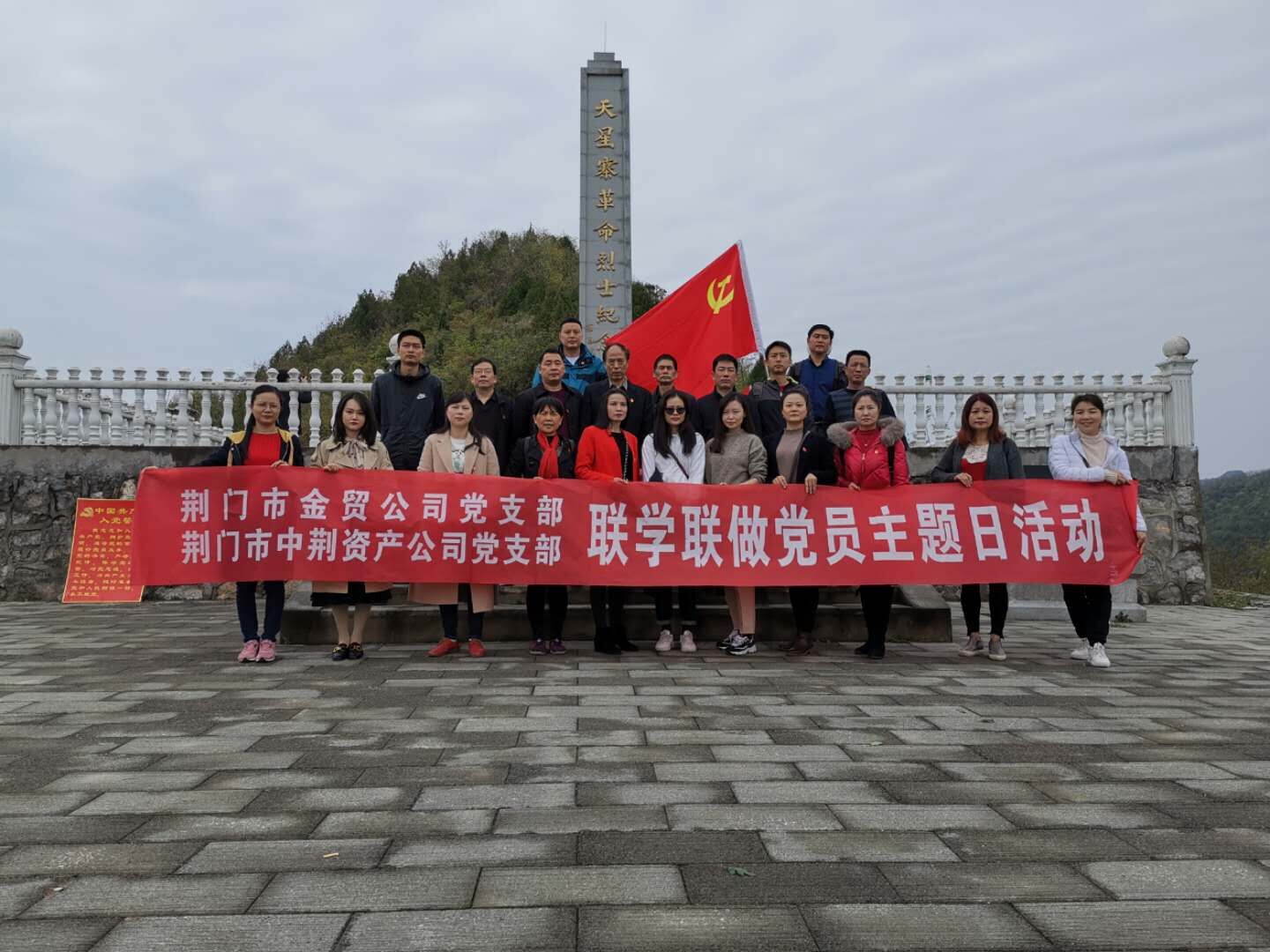 2019年4月3日(星期三)上午,市中荊資產(chǎn)公司機(jī)關(guān)支部、市金貿(mào)公司機(jī)關(guān)支部組織全體黨員在荊門(mén)市仙居鄉(xiāng)天星寨革命烈士紀(jì)念碑聯(lián)合開(kāi)展了2019年4月份聯(lián)學(xué)聯(lián)做主題黨日活動(dòng)。該活動(dòng)以“學(xué)習(xí)貫徹全國(guó)‘兩會(huì)’精神、開(kāi)展國(guó)家安全專(zhuān)題學(xué)習(xí)、學(xué)習(xí)‘共產(chǎn)黨員不準(zhǔn)信仰宗教’及開(kāi)展形式多樣的革命傳統(tǒng)教育”等為主題的2019年第4個(gè)“黨員主題活動(dòng)日”學(xué)習(xí)大會(huì)。